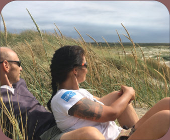 zusammen auf der Terrasse sitzen, über die Felder schauen und